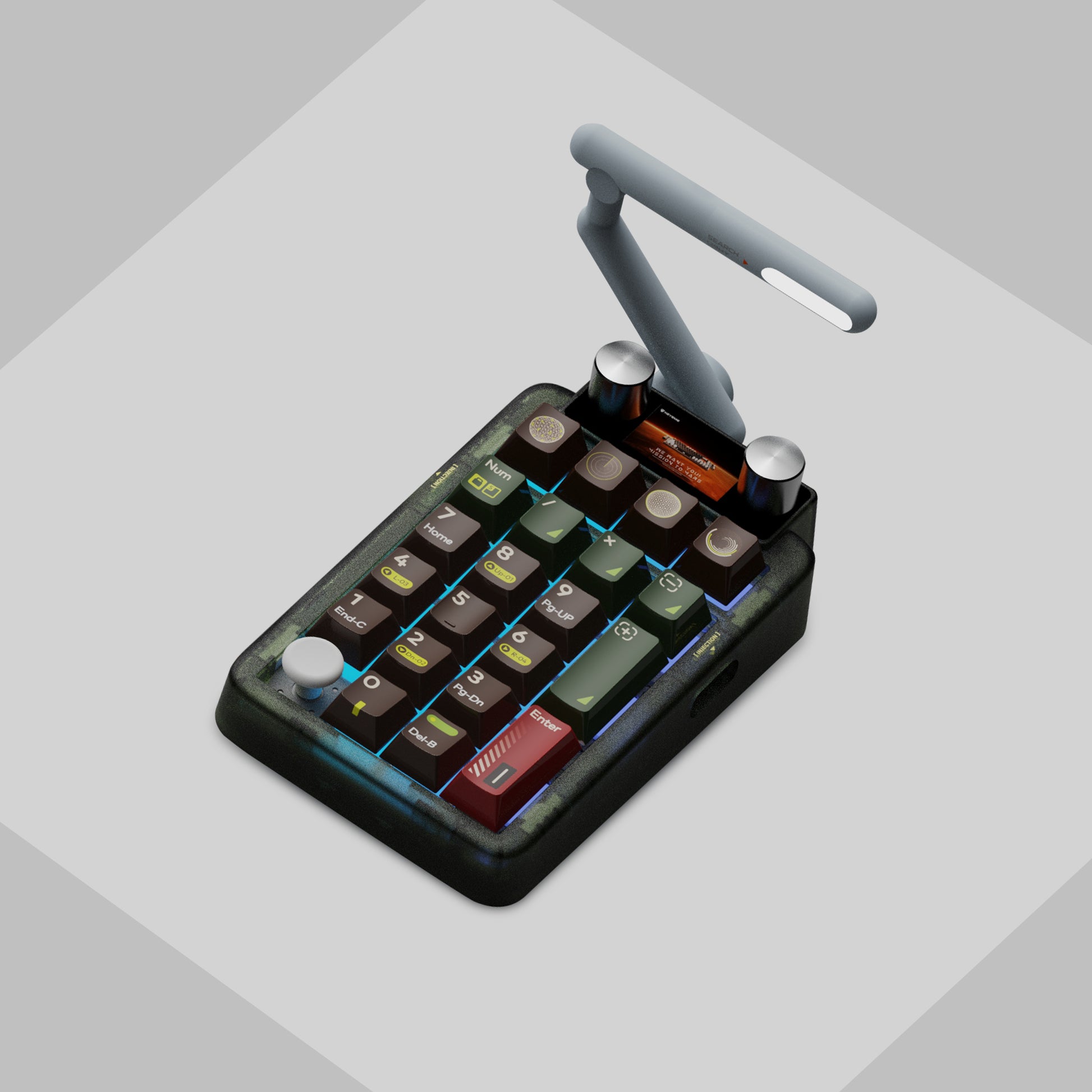 The KeysMe Lunar02 is a compact, feature-packed mechanical numpad designed for versatility and customization. Whether you're adding it to a full-sized keyboard setup or using it on its own for numeric input, the tri-mode connectivity (wired, 2.4 GHz, Bluetooth), hot-swappable switch support, built-in display and programmable knob, and customizable RGB lighting give you a premium, flexible typing companion. Its small footprint and space-themed design make it ideal for professionals and keyboard enthusiasts who want a powerful, portable pad without sacrificing comfort or functionality.